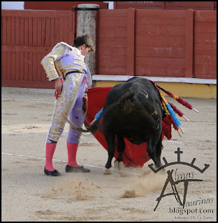Cuarto mas complicado y reservon, aunque el torero se ajusto en los cites mejor que en su anterior.Aguantando los diferentes embistes y jugando se la cornada. Consiguiendo una ovación del publico.