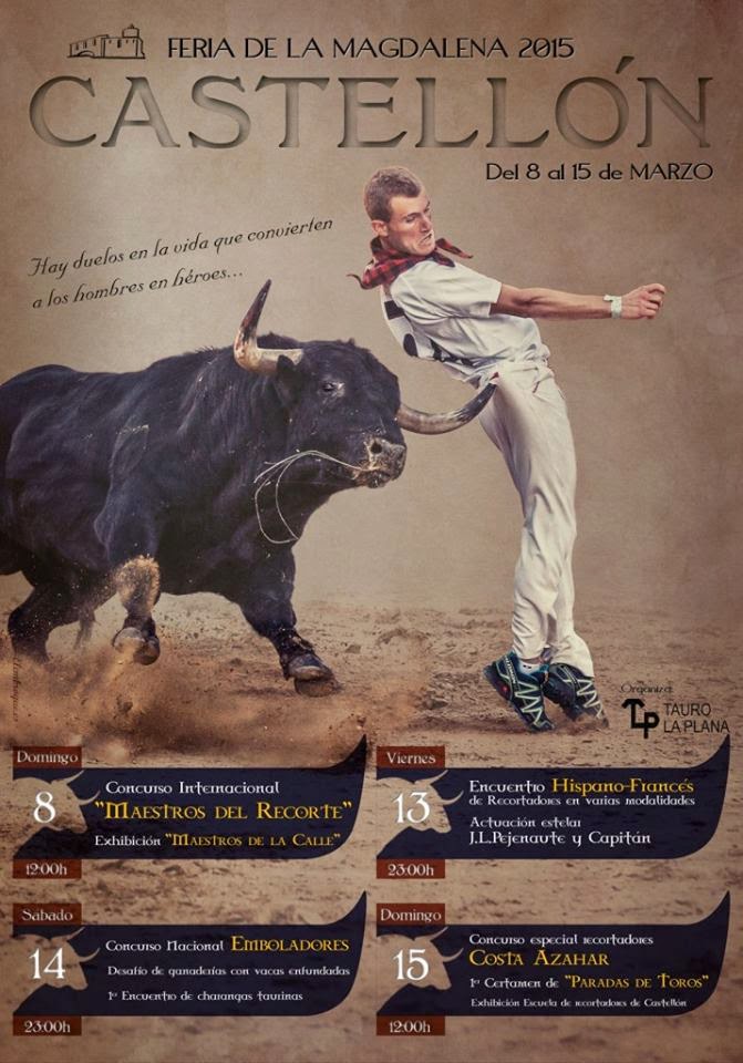 Esta es la lista de los 16 recortadores que participarán en el Concurso Internacional "Maestros del Recorte" que se celebrará el próximo domingo 8 de marzo en la Feria de la Magdalena de Castellón. Los elegidos son los siguientes: