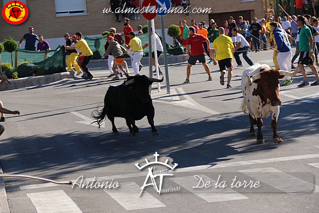 Con una puntualidad inglesa la localidad de Horche, dio suelta a tres toros desde su plaza de toros por sus calles al campo.Precedidos por el cohete, los corredores y lugareños esperan a los bureles en la calle ancha, cruce. Los astados con una presentación impecable, adquiridos en la Fina la Morera, propiedad de Diego Valladar y David Ecija. De juegos dispares por el rastrojo uno de ello pronto salio fuera del núcleo urbano. El Colorao marcado a fuego con el hierro gaditano de Montes de oca, destaco por su buen juego acudiendo a todos los cites.