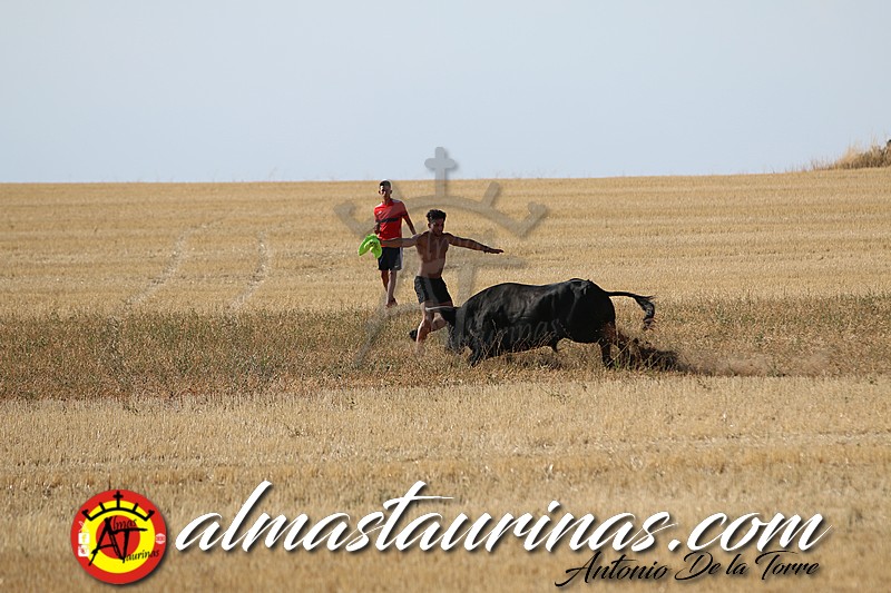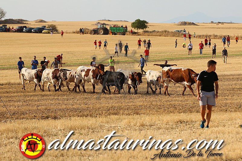 La singularidad de esta suelta consiste en desencierro desde la plaza al campo y posterior encierro desde el rastrojo al pueblo. Sin la presencia de coches, con los cuatro jinetes encargados de los bueyes, el resto de los aficionados a pie.