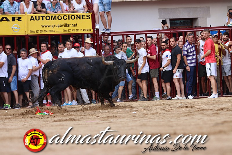 En la mañana del sábado 25 de julio, se realiza su encierro tradicional matinal con un impresionante toro de Pablo Mayoral .